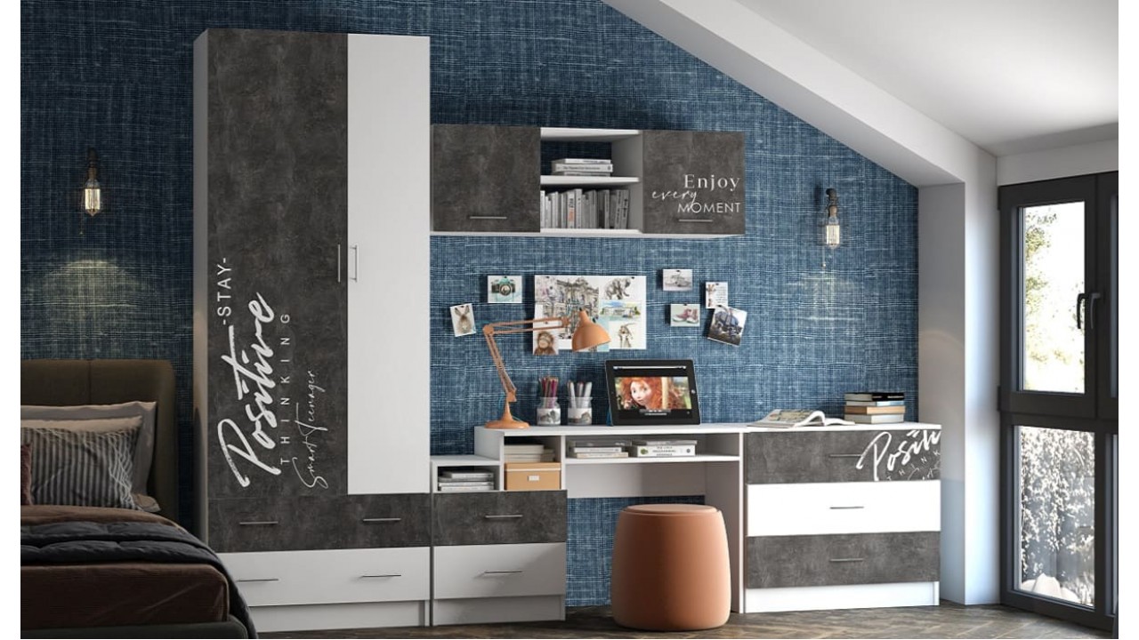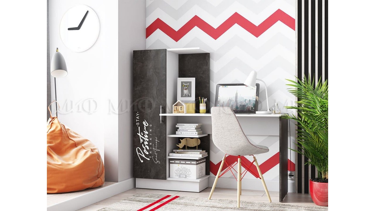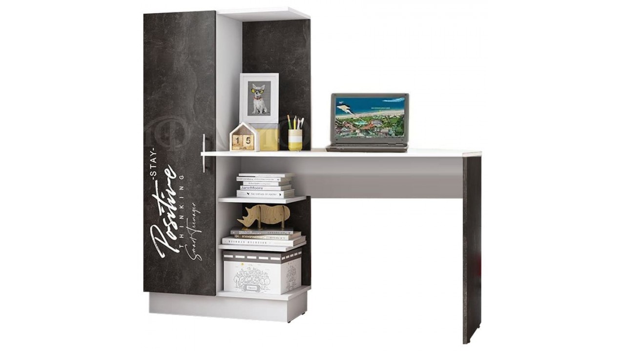 Стол письменный Вега New Позитив белый - бетон тёмный.