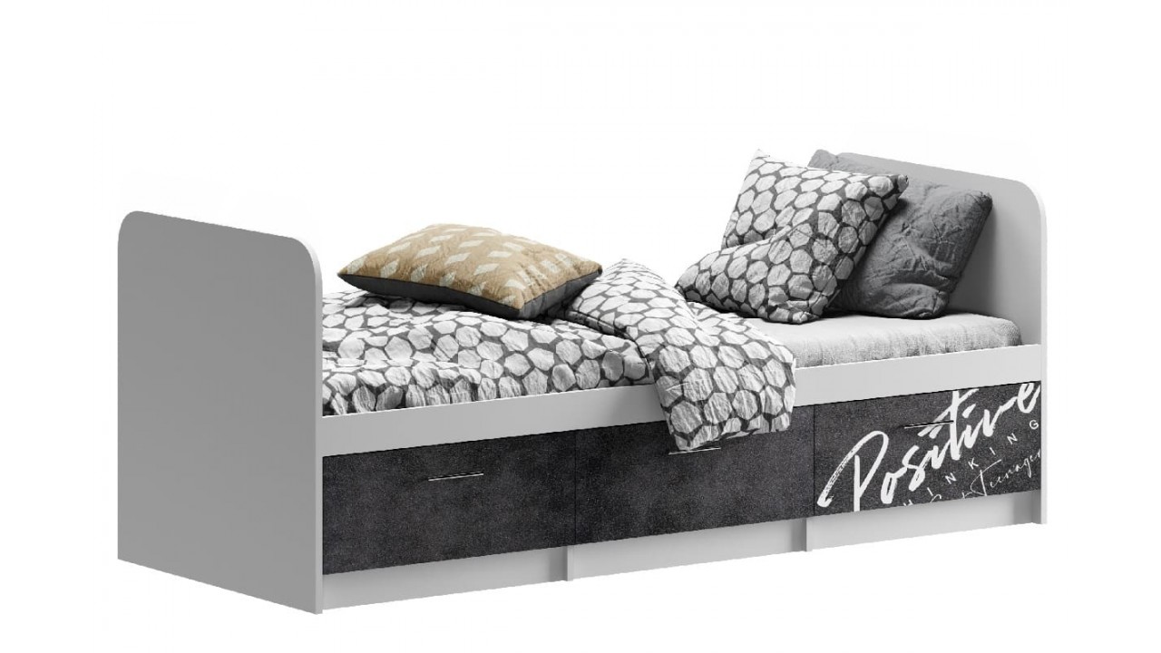 Кровать Вега New Позитив белый - бетон тёмный.