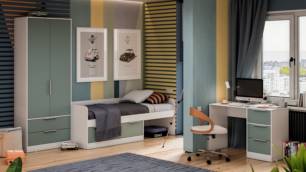 Модульность. Модули коллекции «Марли» оснащены всем необходимым: от удобного спального и рабочего места до шкафов для одежды, книг и места для хранения необходимых предметов. Все модули серии идеально комбинируются между собой, что позволяет создавать разнообразные композиции в едином стиле. Для завершения интерьера остается определиться с оттенками стен, пола, текстиля и наслаждаться каждым отдельно взятым вариантом композиции.