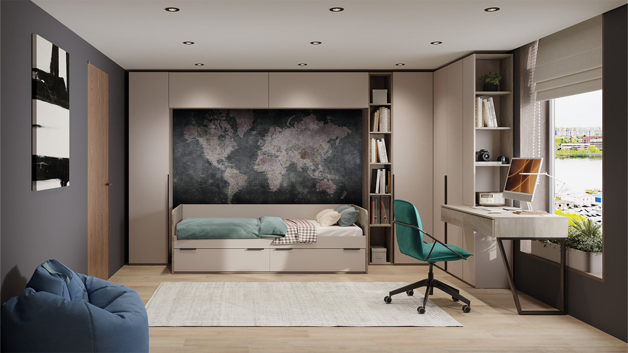 Модульность Одним из ключевых преимуществ набора модульной мебели является его модульность. Коллекция представляет собой сквозную концепцию, где все модули могут быть использованы для обустройства интерьера спальни, гостиной, детской или прихожей. Счастливый обладатель данной коллекции может создавать различные композиции и сочетания, в зависимости от своих предпочтений и потребностей
