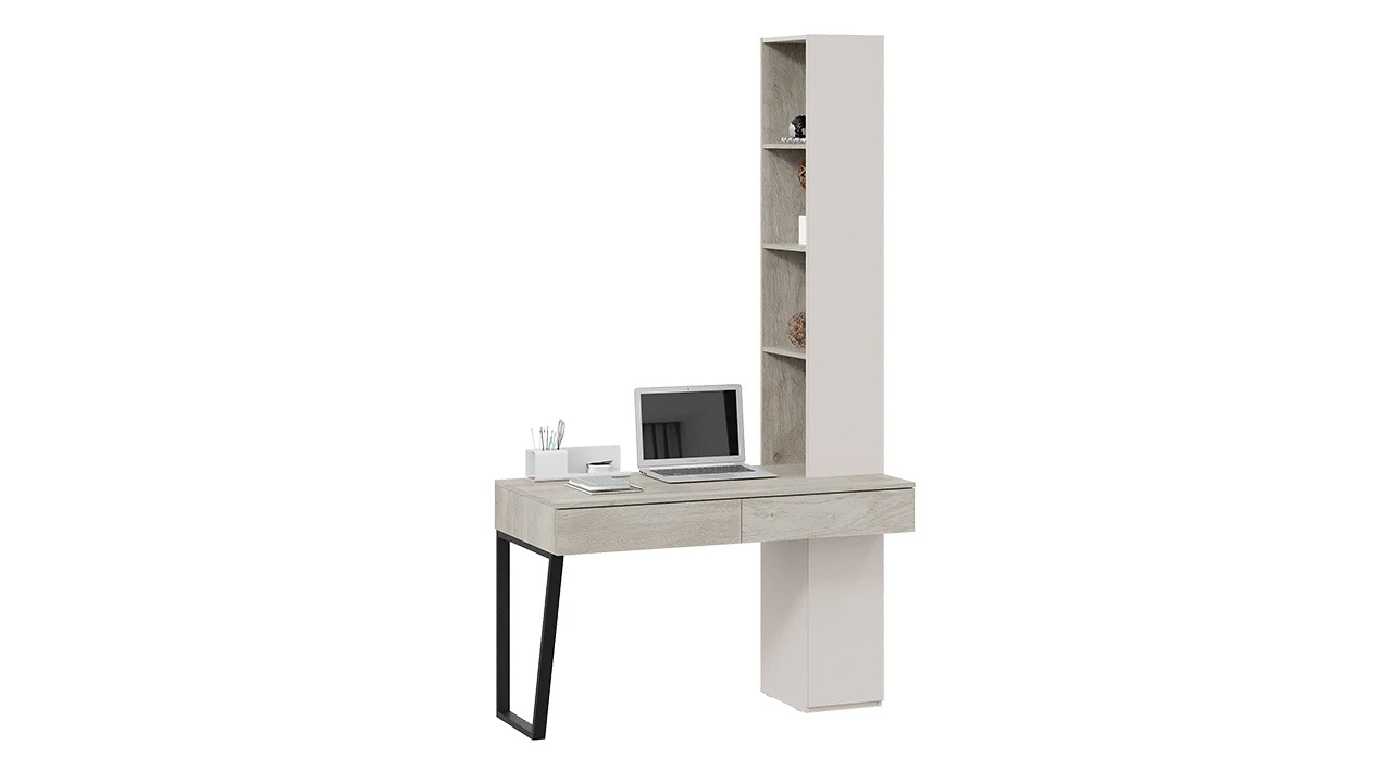 Стол письменный (366/580) со шкафом комбинированным (настольным) «Порто» - СМ-393.15.012 Кашемир матовый, Баттл Рок, Кашемир сатин – 1 шт.