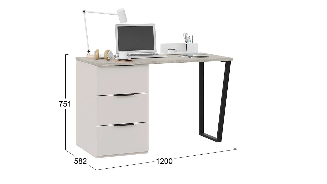 Стол письменный с тумбой универсальной «Порто» - СМ-393.15.011 Кашемир матовый, Баттл Рок, Кашемир сатин – 1 шт.