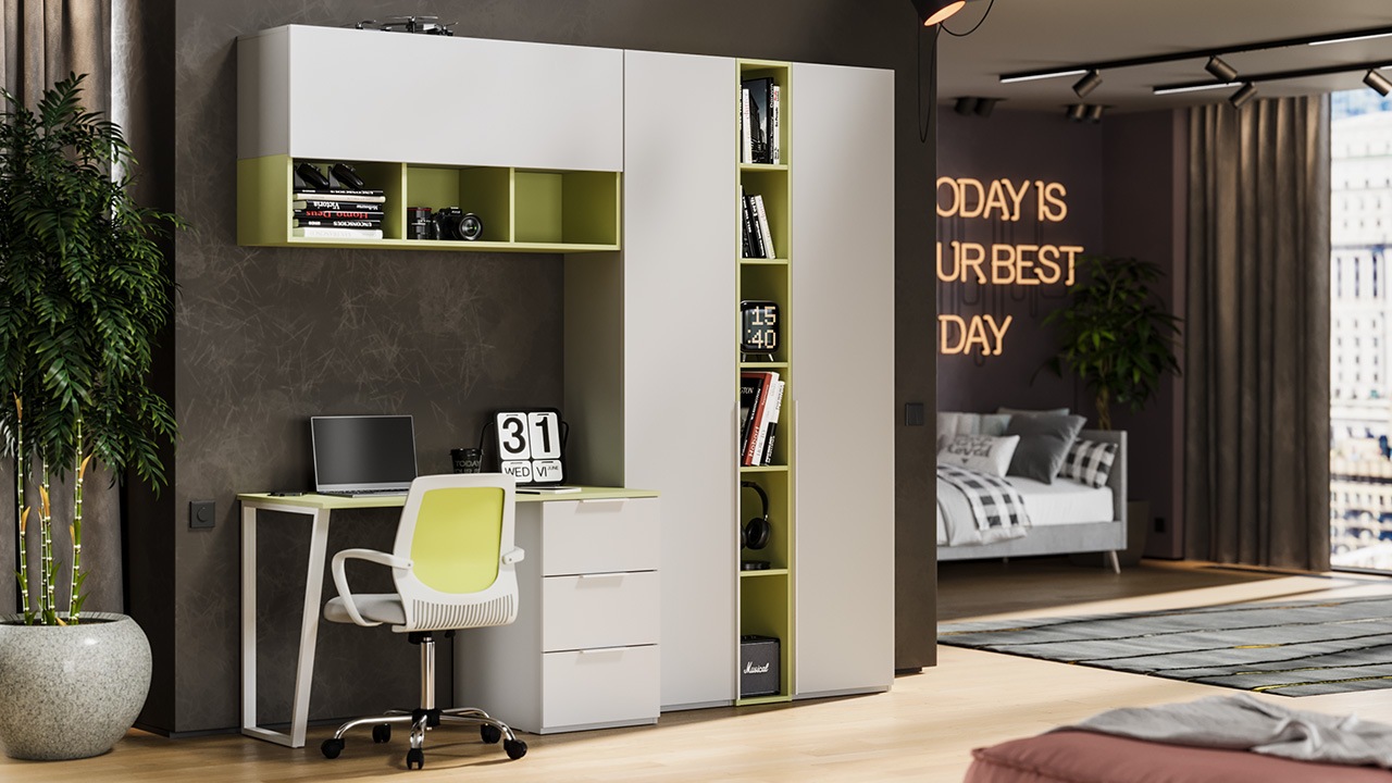 Модульность Одним из ключевых преимуществ набора модульной мебели является его модульность. Коллекция представляет собой сквозную концепцию, где все модули могут быть использованы для обустройства интерьера спальни, гостиной, детской или прихожей. Счастливый обладатель данной коллекции может создавать различные композиции и сочетания, в зависимости от своих предпочтений и потребностей