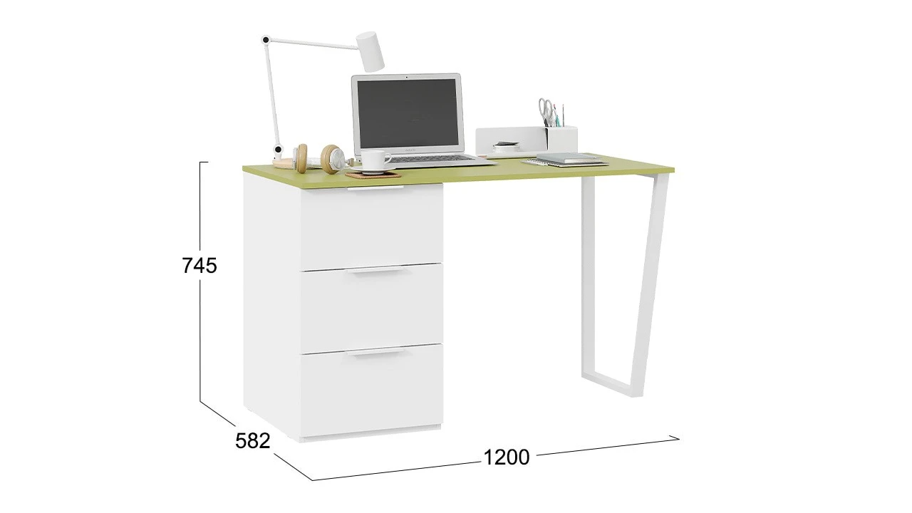 Стол письменный с тумбой универсальной «Порто» - СМ-393.15.011 Белый, Зеленый – 1 шт.