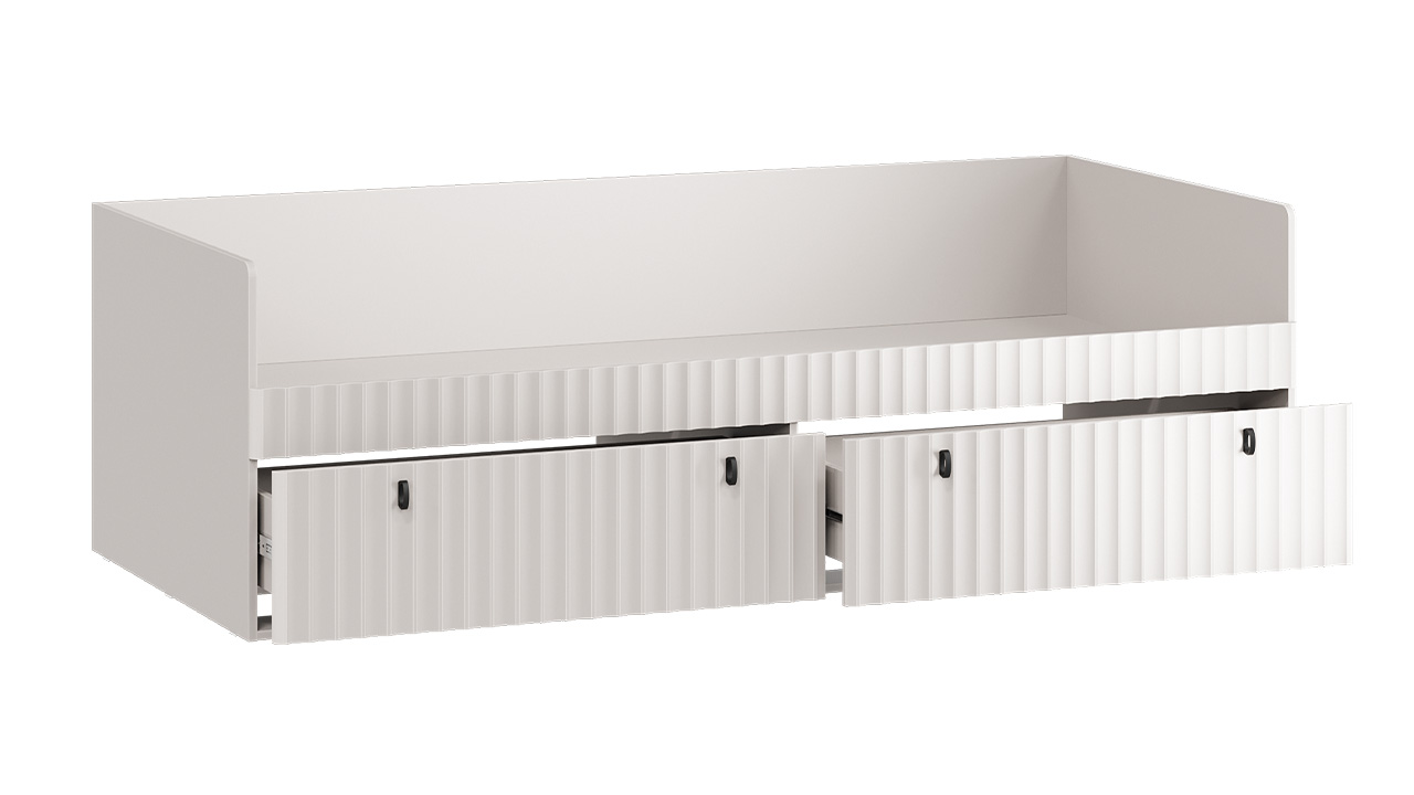 Дизайн. Фасады МДФ с оригинальной волнообразной фрезеровкой, придают мебели динамичность и уникальность. Специальная пленка soft-touch создает бархатистую поверхность, которая радует тактильными ощущениями при каждом взаимодействии. Элегантные линии и проработанные детали создают атмосферу изысканности, идеально соответствуя актуальным трендам в дизайне интерьеров. Фрезеровка столешницы имитирует фрезеровку фасадов, обеспечивая безопасность ребёнка благодаря отсутствию острых углов.