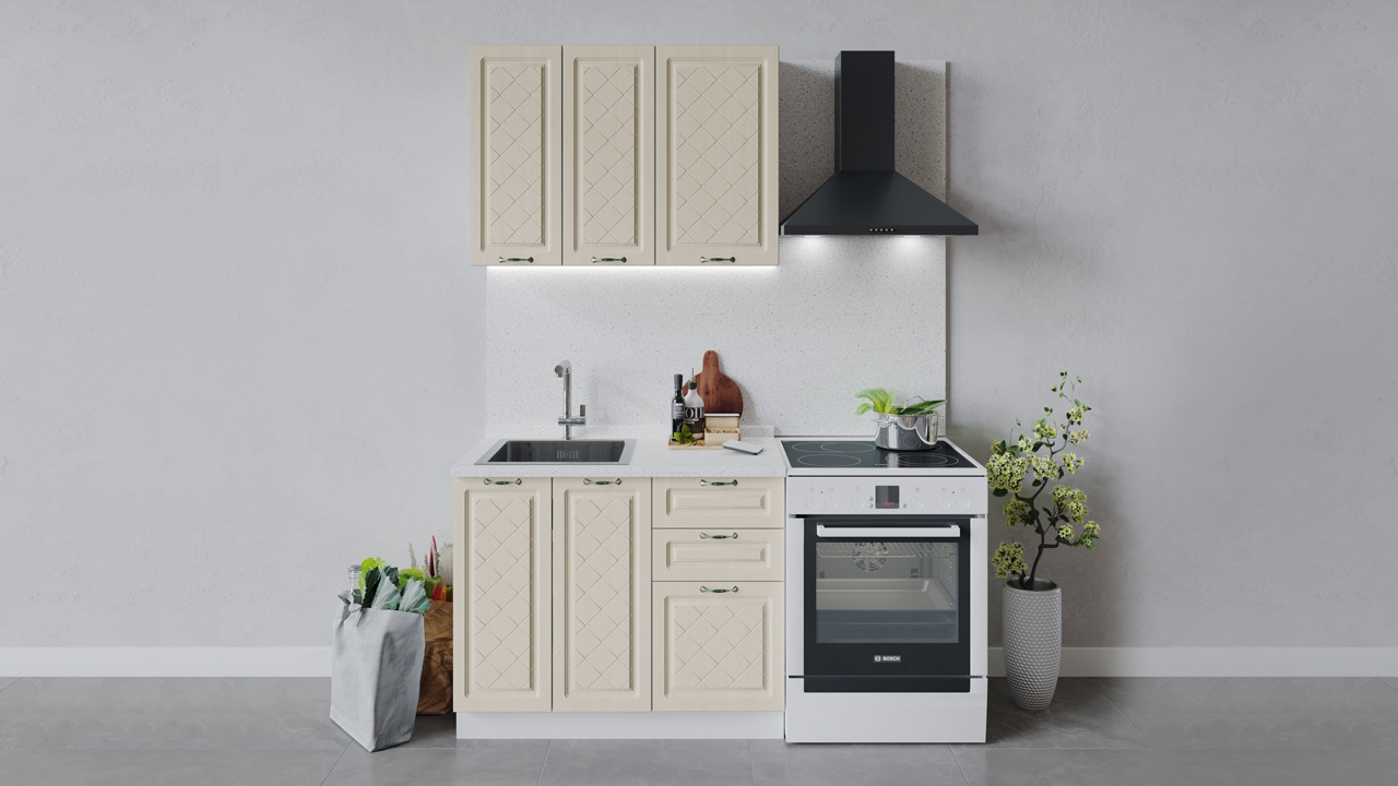 | Габаритный размер набора модулей без учета газовой плиты1 000 | Оттенок фасадаБежевый | Цвет ручкиБрашированная старинная бронза |