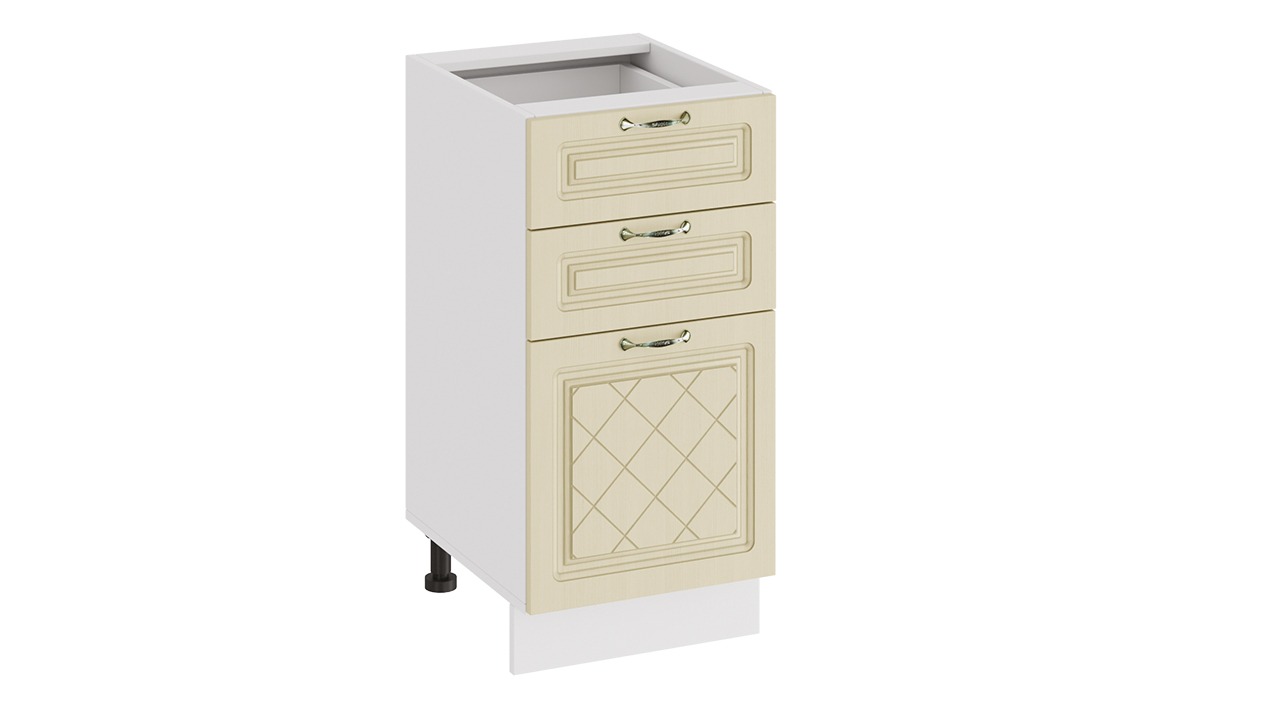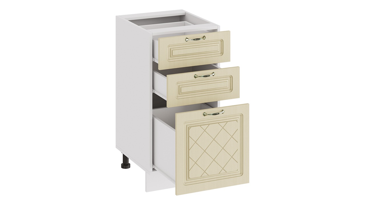 Шкаф напольный с тремя ящиками «Бьянка» - 1Н4Я3 Белый, Дуб ваниль – 1 шт.