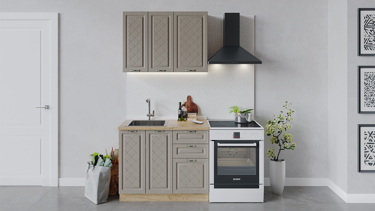 | Габаритный размер набора модулей без учета газовой плиты1 000 | Оттенок фасадаКоричневый | Цвет ручкиБрашированная старинная бронза |