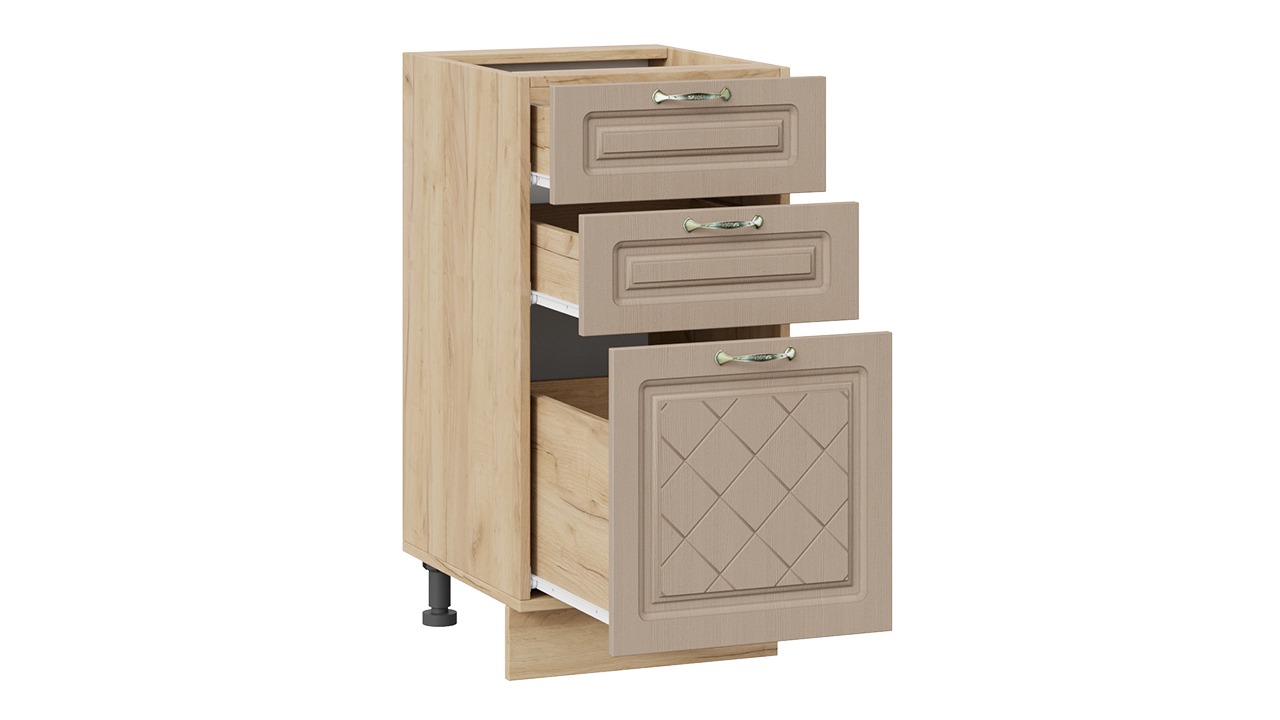 Шкаф напольный с тремя ящиками «Бьянка» - 1Н4Я3 Дуб Крафт золотой, Дуб кофе – 1 шт.