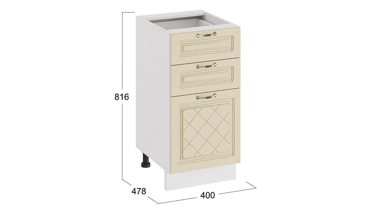 Шкаф напольный с тремя ящиками «Бьянка» - 1Н4Я3 Белый, Дуб ваниль – 1 шт.