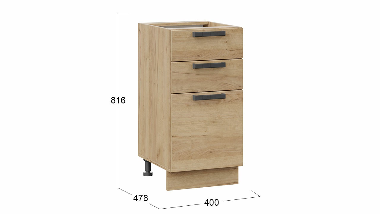 Шкаф напольный с тремя ящиками «Детройт» - 1Н4Я3 Дуб Крафт золотой – 1 шт.