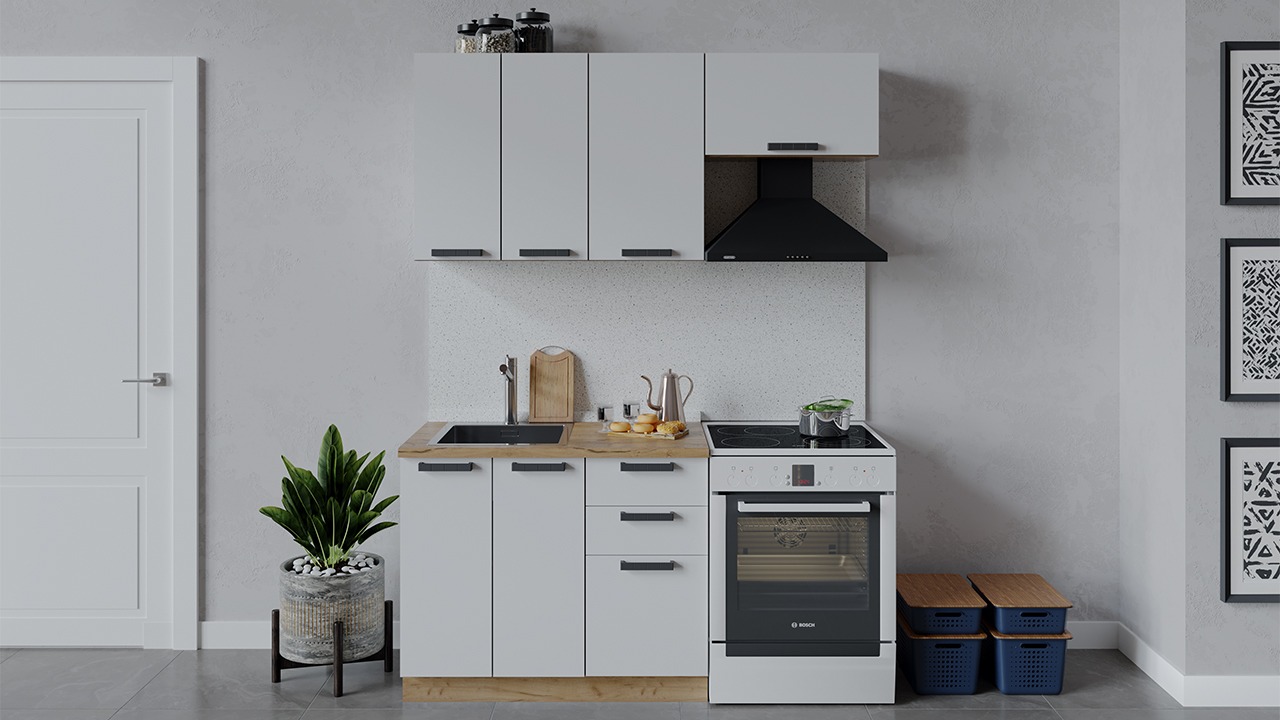 | Габаритный размер набора модулей без учета газовой плиты1 600 | Оттенок фасадаБелый | Цвет ручкиЧерный |