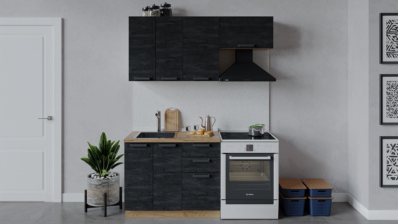 | Габаритный размер набора модулей без учета газовой плиты1 600 | Оттенок фасадаЧерный | Цвет ручкиЧерный |