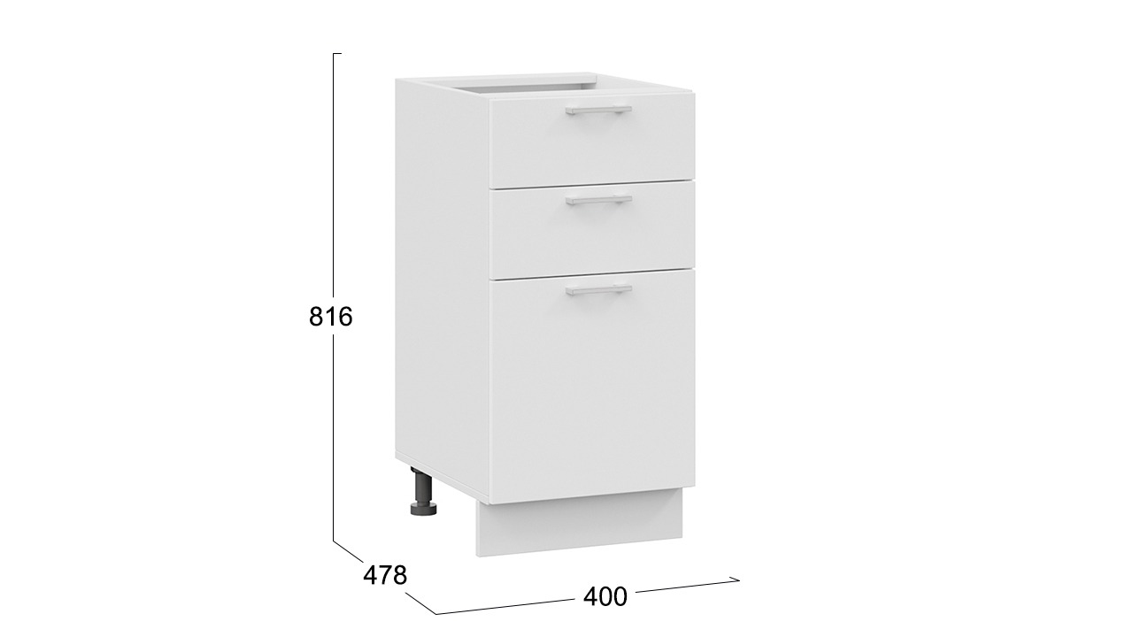Шкаф напольный с тремя ящиками «Габриэлла» - 1Н4Я3 Белый, Сноу – 1 шт.