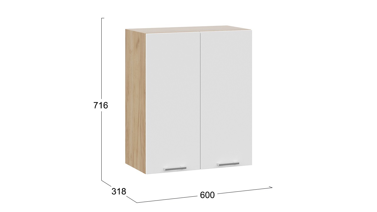 Шкаф навесной c двумя дверями «Габриэлла» - 1В6 Дуб Крафт золотой, Сноу – 1 шт.
