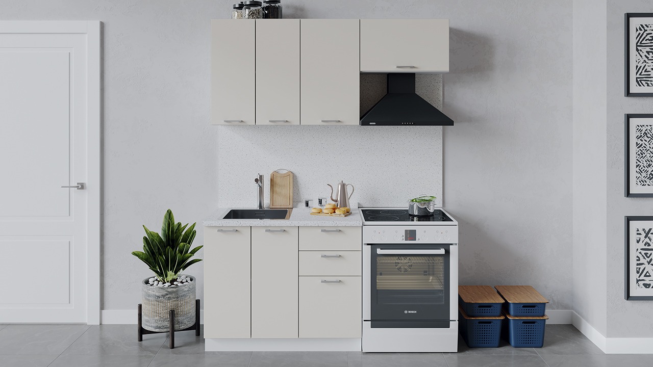 | Габаритный размер набора модулей без учета газовой плиты1 600 | Оттенок фасадаБежевый | Цвет ручкиМеталл |
