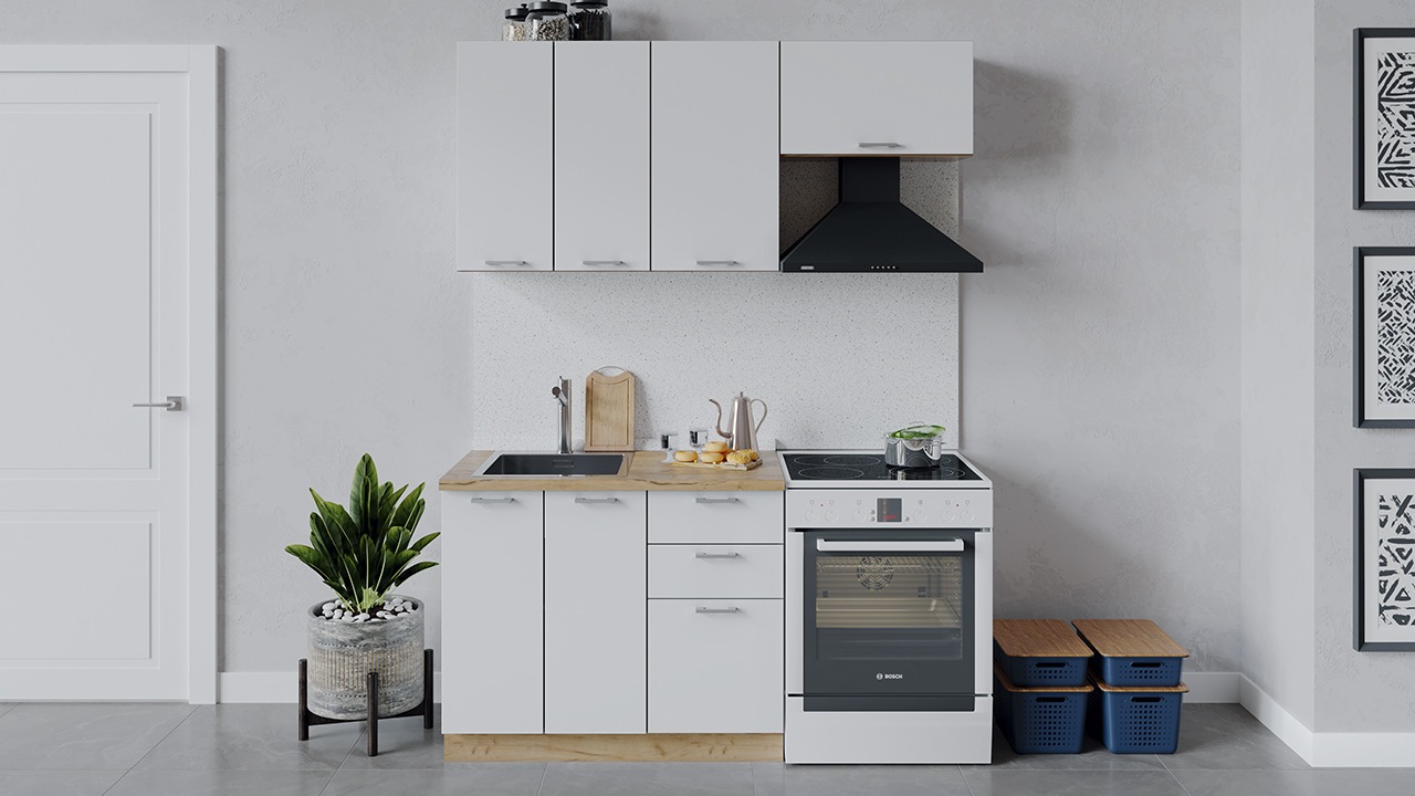| Габаритный размер набора модулей без учета газовой плиты1 600 | Оттенок фасадаБелый | Цвет ручкиМеталл |