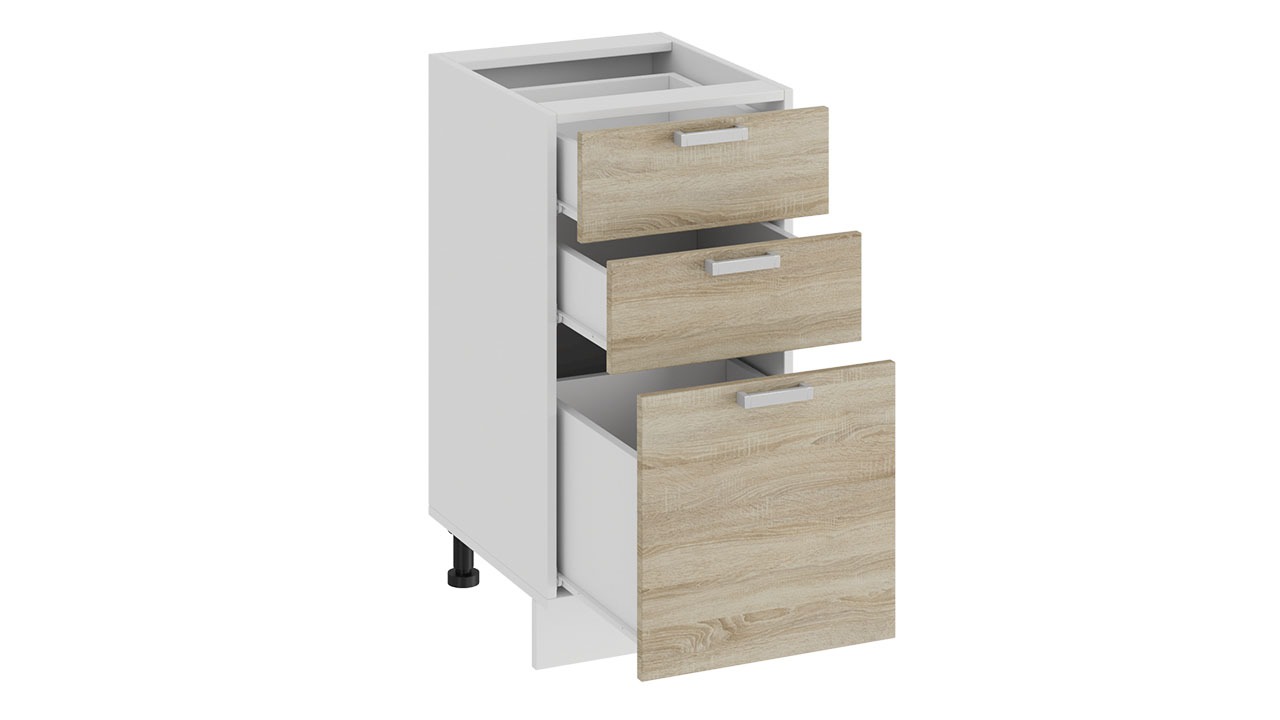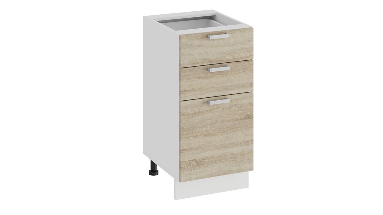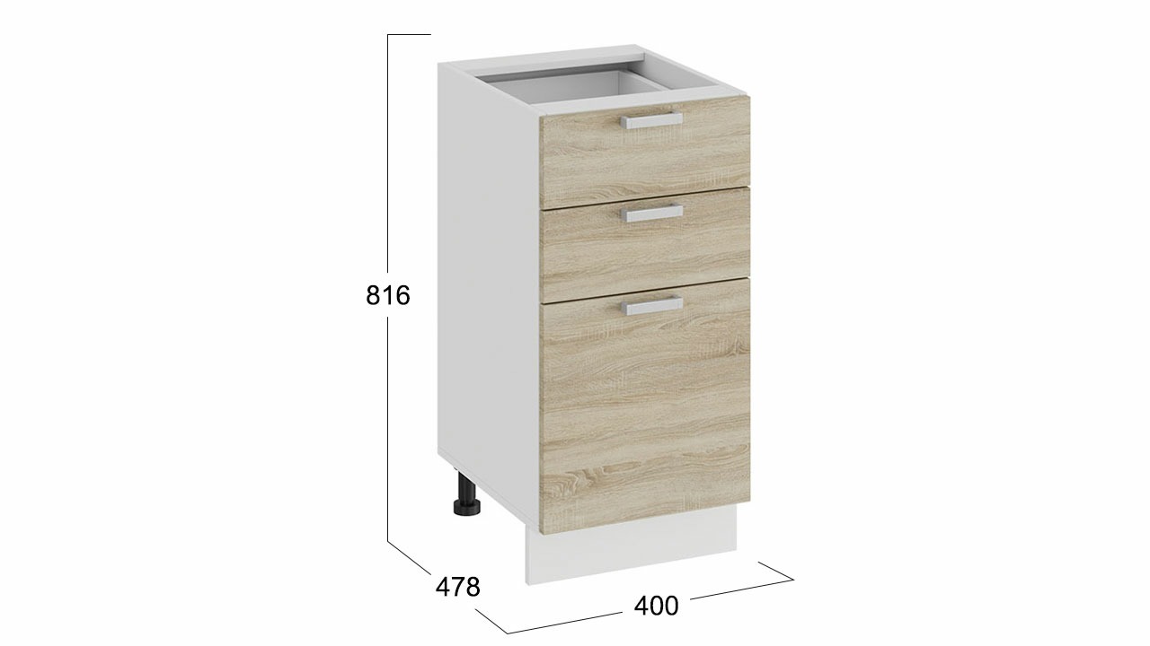 Шкаф напольный с тремя ящиками «Гранита» - 1Н4Я3 Белый, Дуб Сонома – 1 шт.