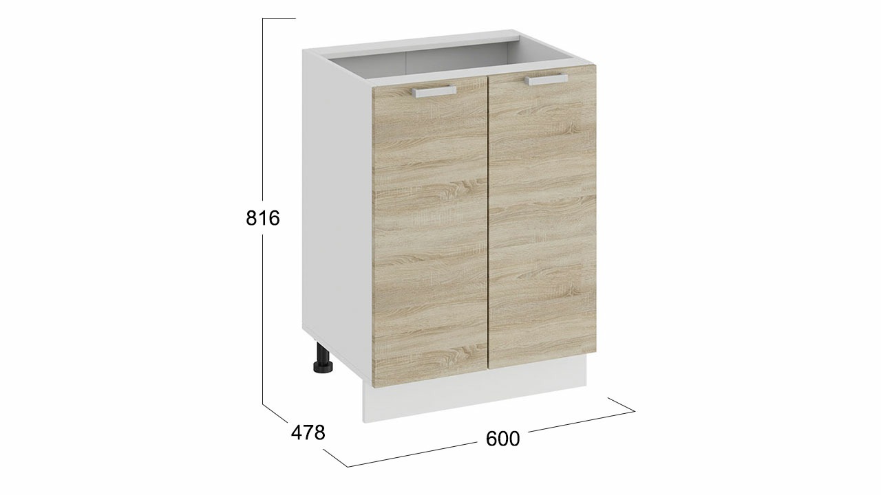 Шкаф напольный с двумя дверями «Гранита» - 1Н6 Белый, Дуб Сонома – 1 шт.
