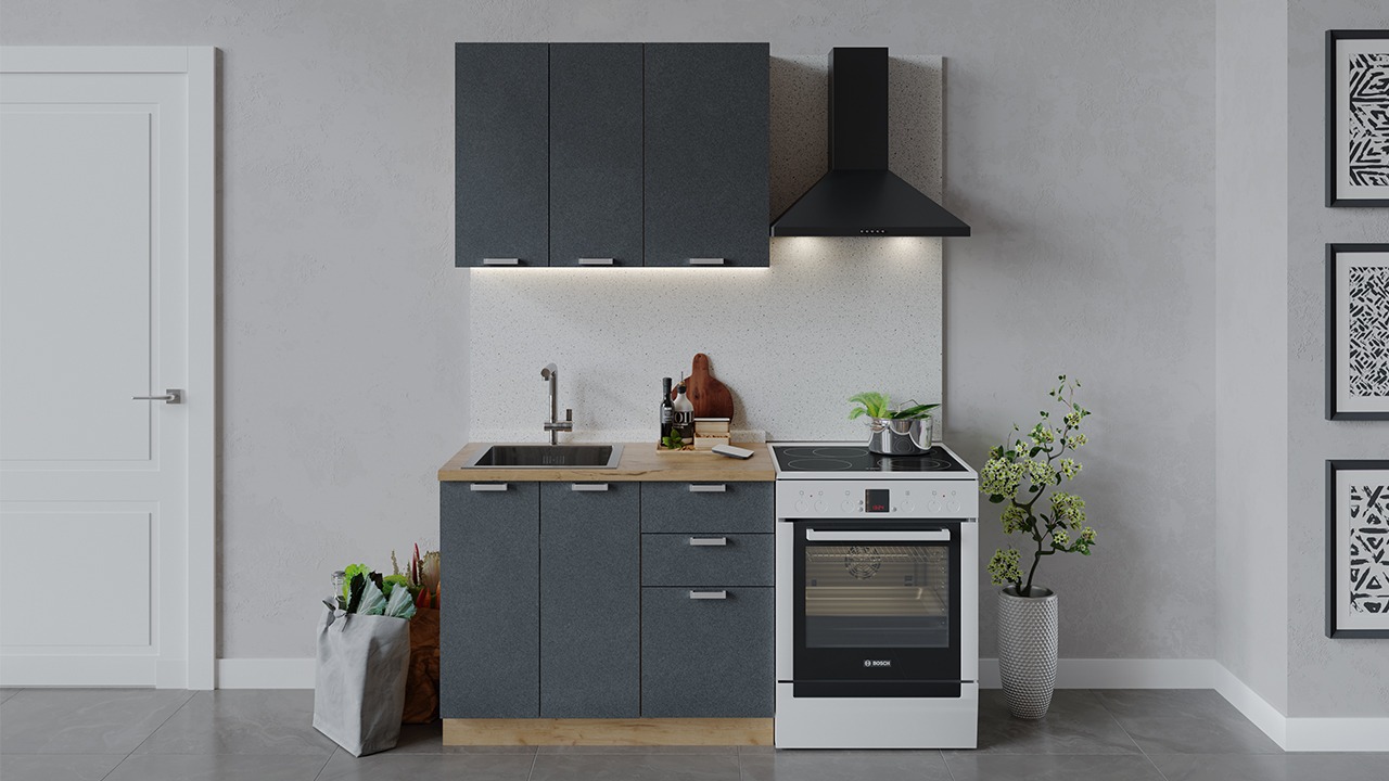 | Габаритный размер набора модулей без учета газовой плиты1 000 | Оттенок фасадаСерый | Цвет ручкиАлюминий |