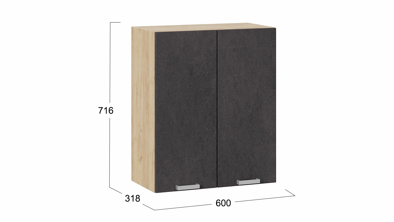 Шкаф навесной c двумя дверями «Гранита» - 1В6 Дуб Крафт золотой, Бетон графит – 1 шт.