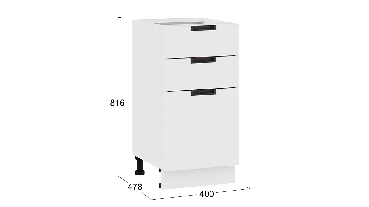 Шкаф напольный с тремя ящиками «Гренада» - 1Н4Я3 Белый, Холст Белый – 1 шт.