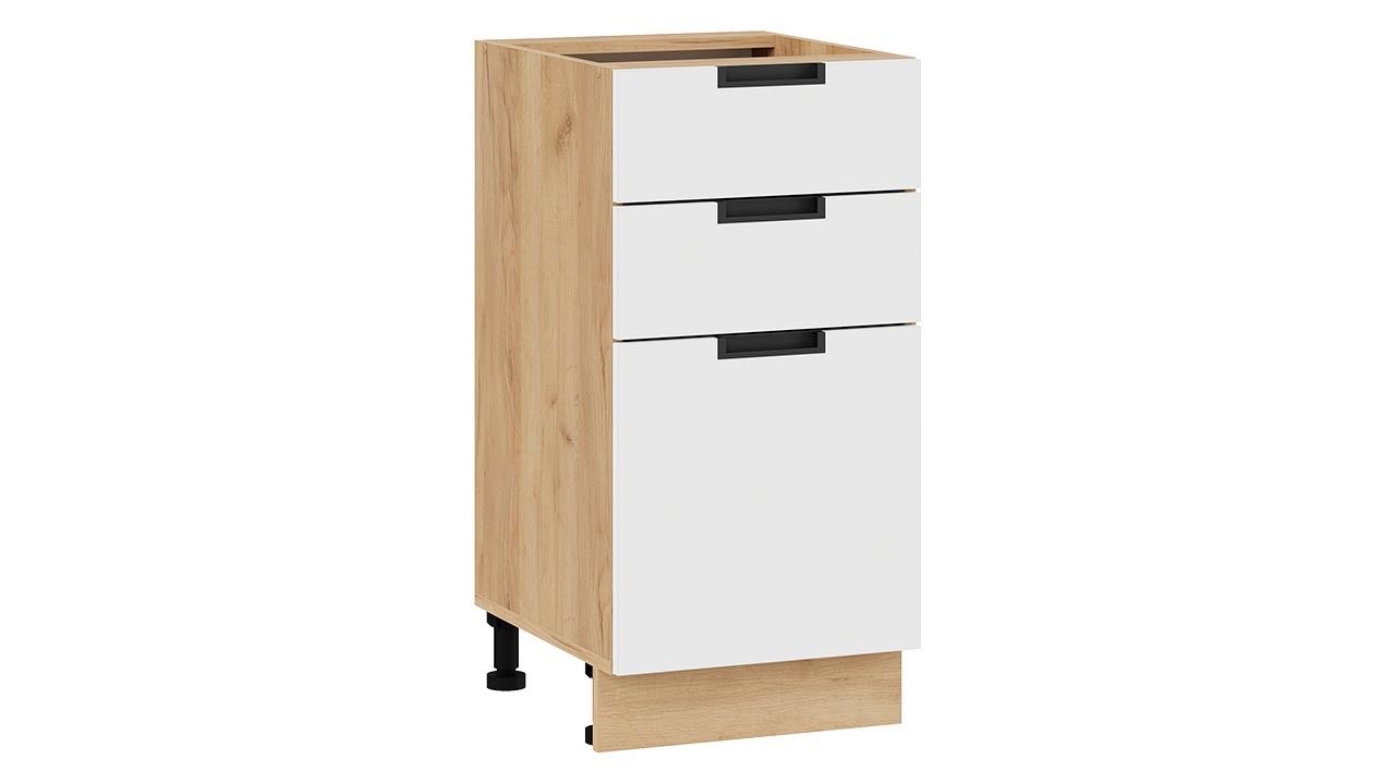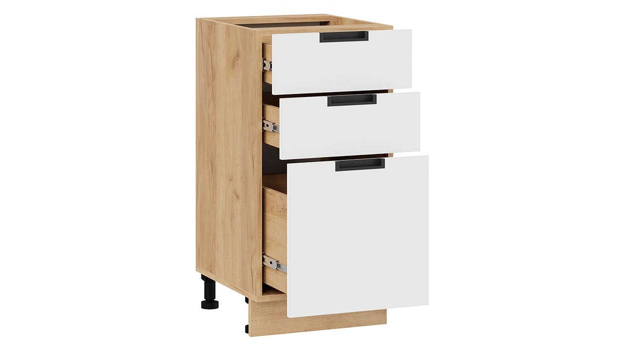 Шкаф напольный с тремя ящиками «Гренада» - 1Н4Я3 Дуб Крафт золотой, Холст Белый – 1 шт.