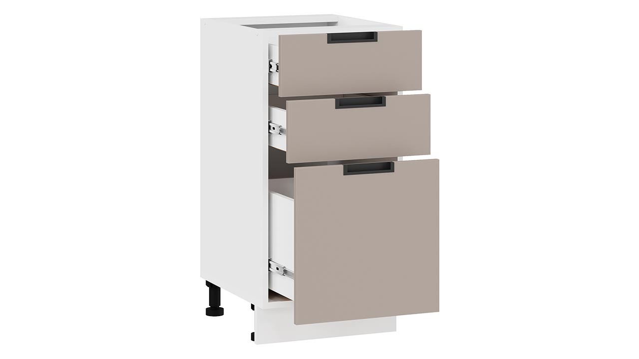 Шкаф напольный с тремя ящиками «Гренада» - 1Н4Я3 Белый, Холст латте – 1 шт.