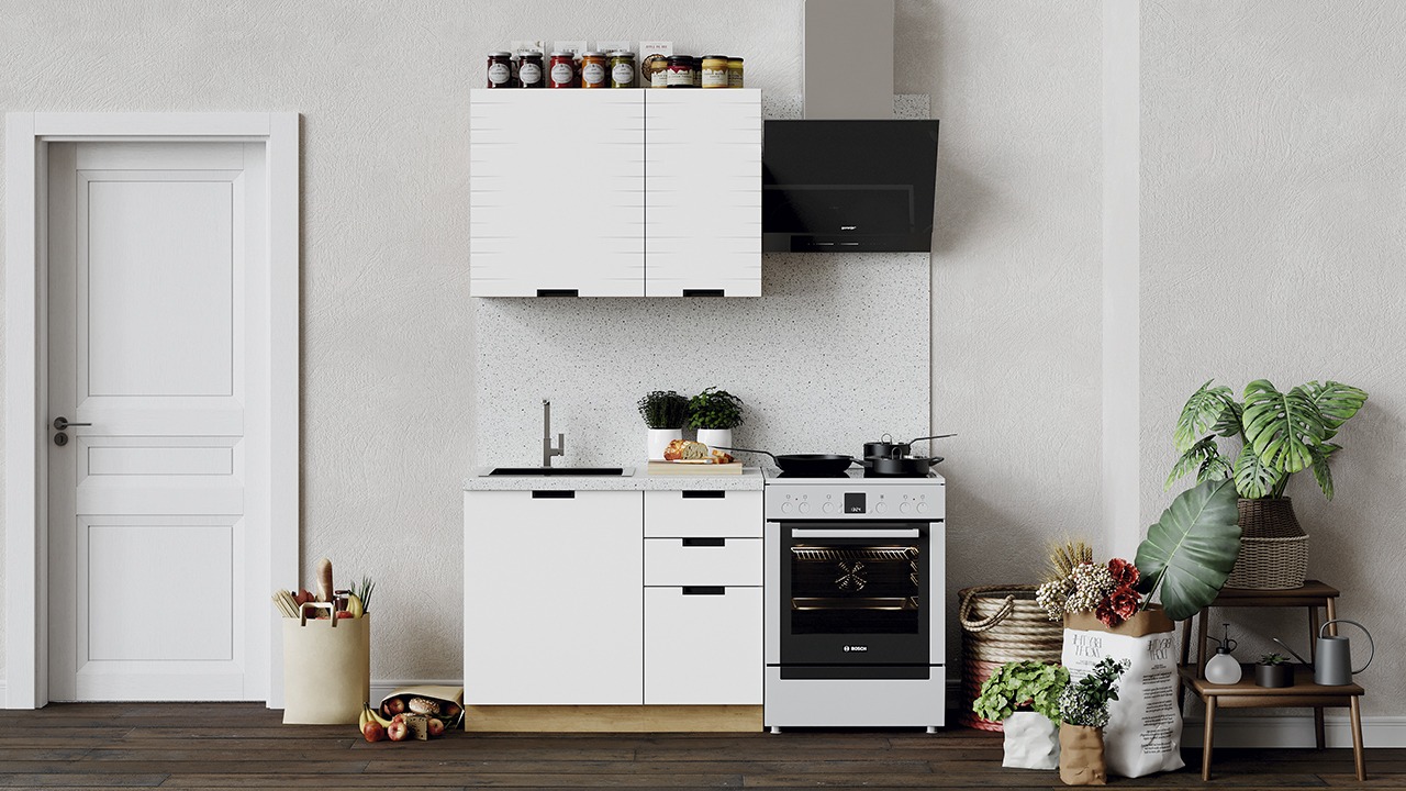 | Габаритный размер набора модулей без учета газовой плиты1 000 | Оттенок фасадаБелый | Цвет фасадаХолст Белый |