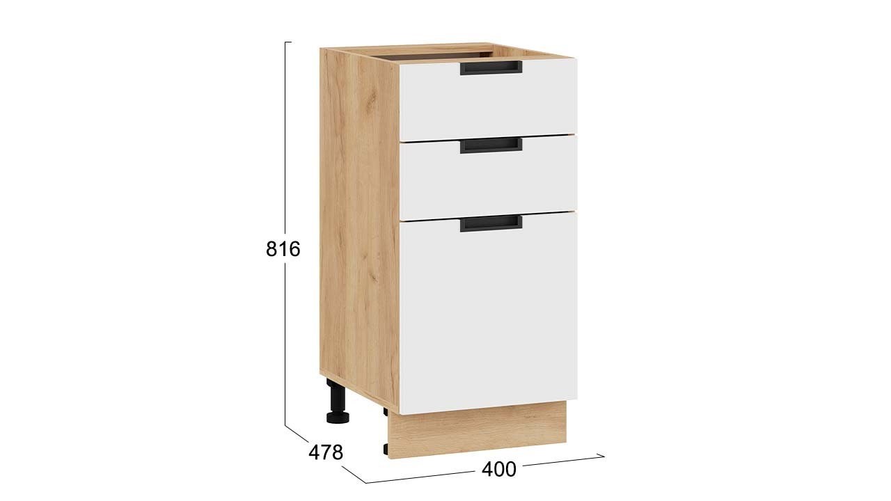 Шкаф напольный с тремя ящиками «Гренада» - 1Н4Я3 Дуб Крафт золотой, Холст Белый – 1 шт.