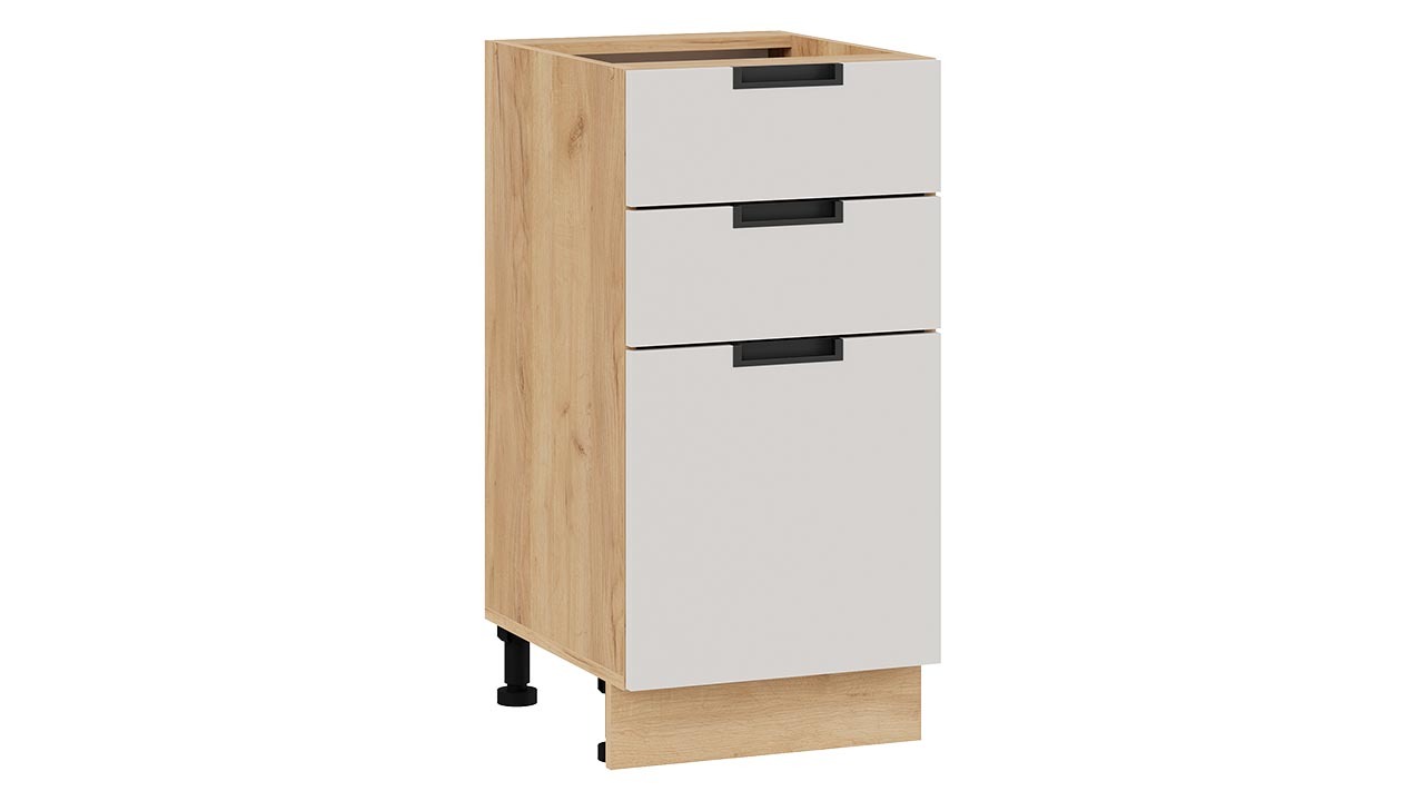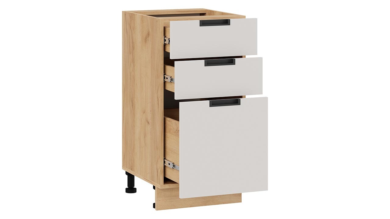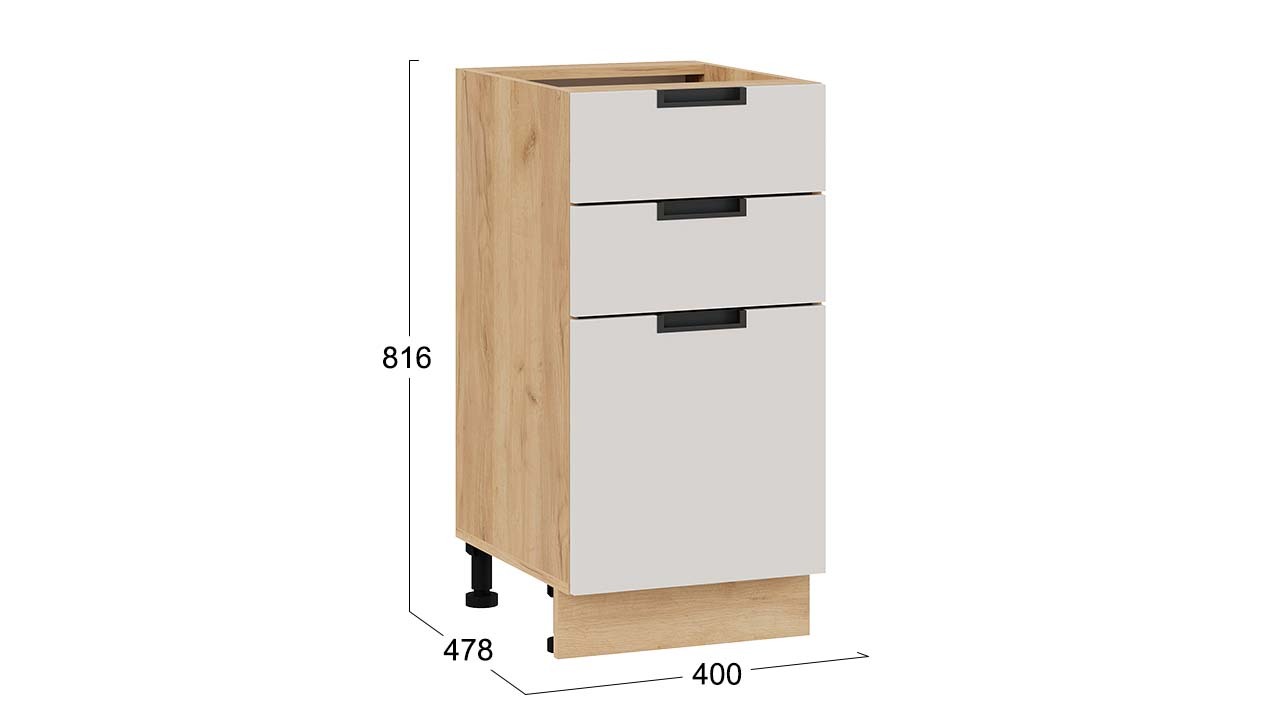 Шкаф напольный с тремя ящиками «Гренада» - 1Н4Я3 Дуб Крафт золотой, Холст мокко – 1 шт.