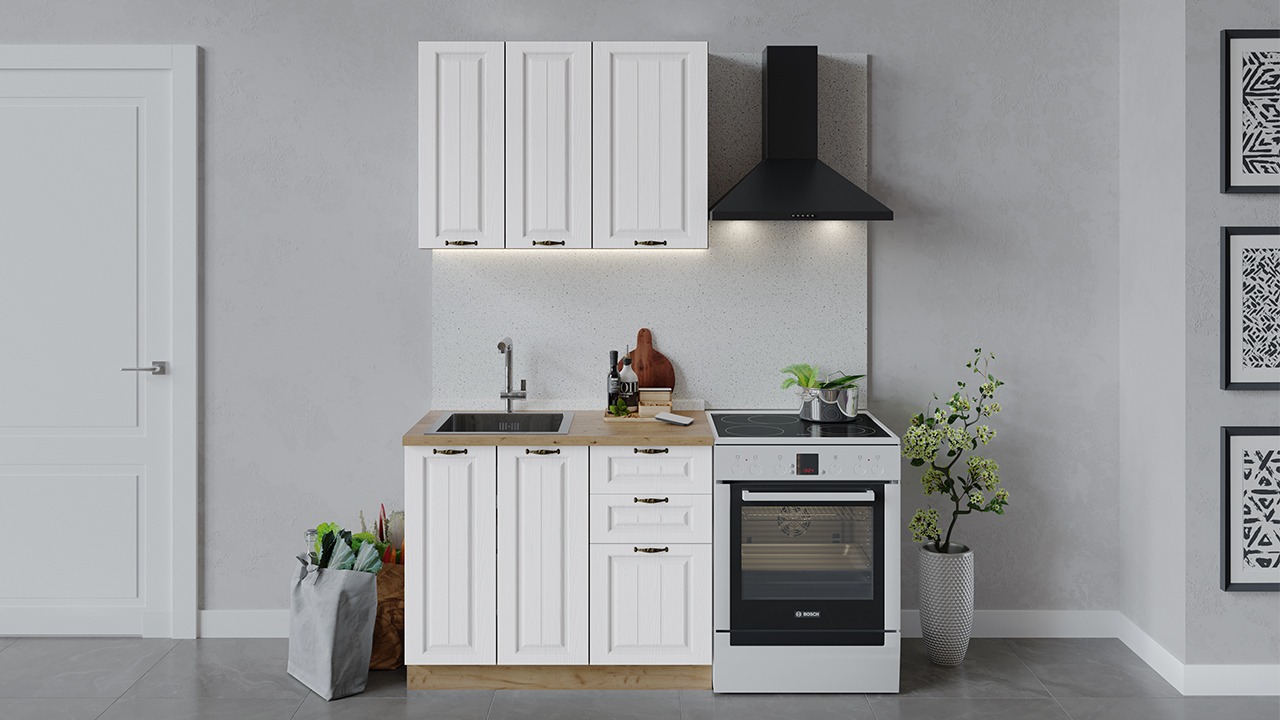 | Габаритный размер набора модулей без учета газовой плиты1 000 | Оттенок фасадаБелый | Цвет ручкиБрашированная старинная бронза |