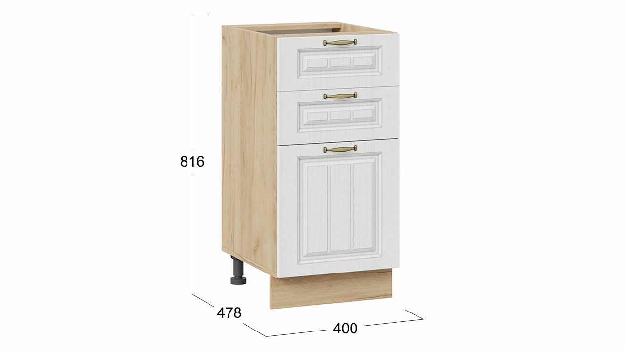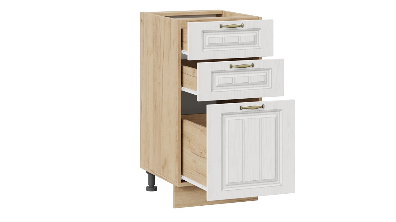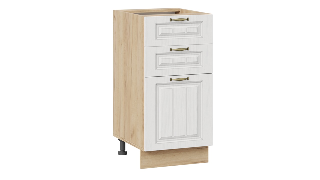 Шкаф напольный с тремя ящиками «Лина» - 1Н4Я3 Дуб Крафт золотой, Белый – 1 шт.
