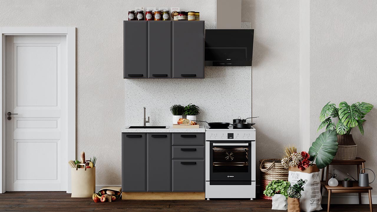 | Габаритный размер набора модулей без учета газовой плиты1 000 | Оттенок фасадаСерый | Цвет фасадаАсфальт супермат |