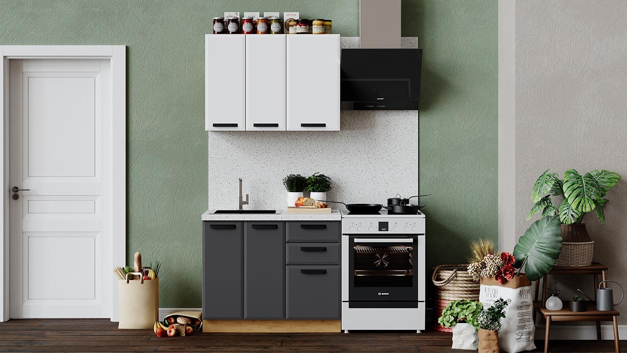 | Габаритный размер набора модулей без учета газовой плиты1 000 | Оттенок фасадаБелый, Серый | Цвет фасадаБелый супермат, Асфальт супермат |