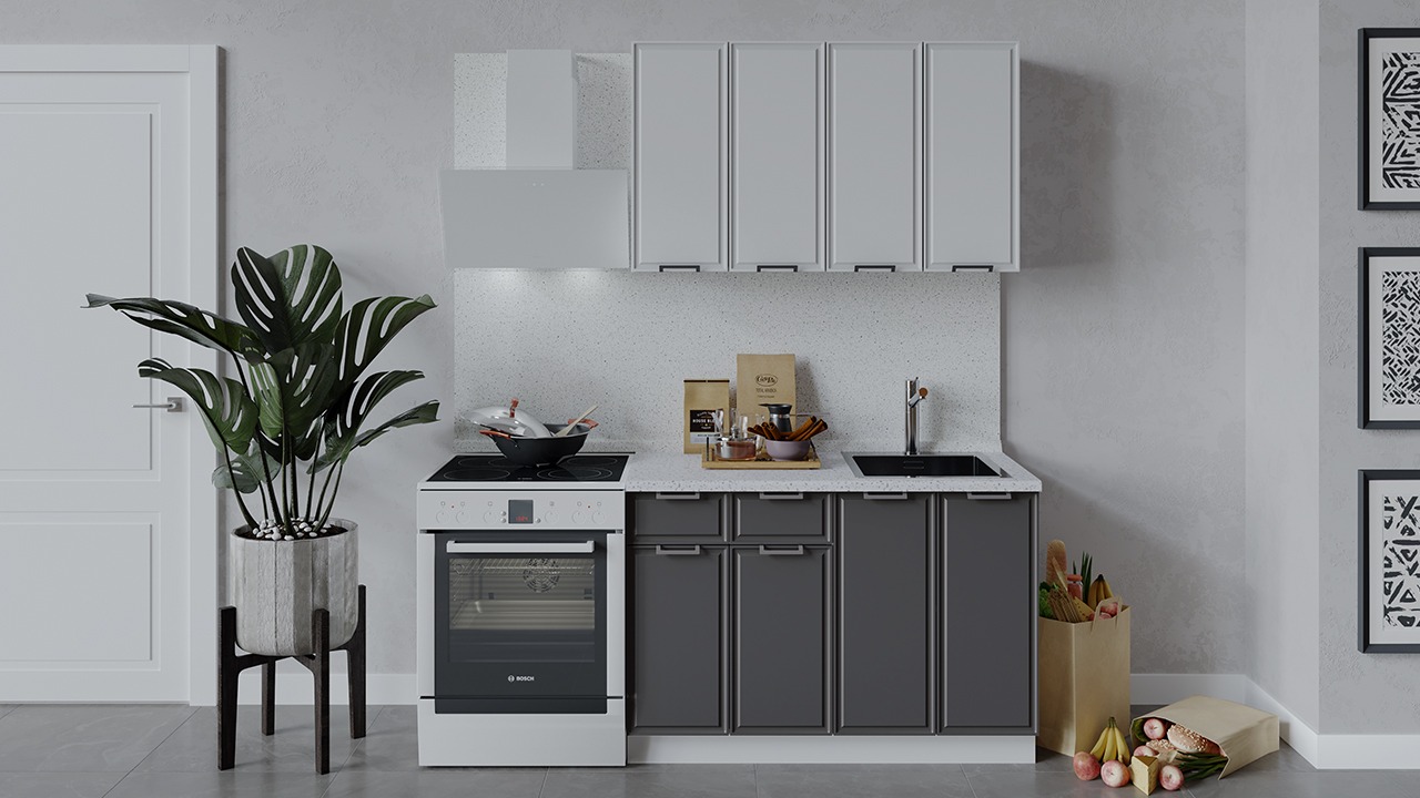 | Габаритный размер набора модулей без учета газовой плиты1 200 | Оттенок фасадаБелый, Серый | Цвет ручкиМеталл |