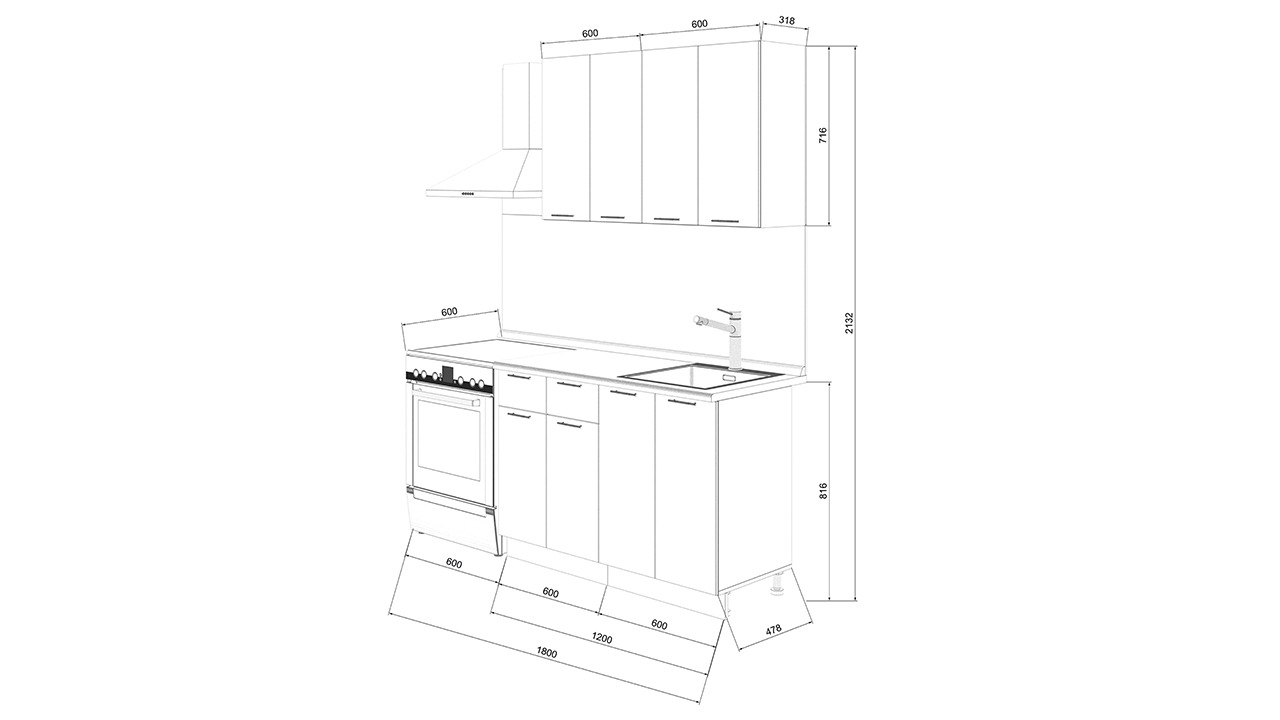 | Габаритный размер набора модулей без учета газовой плиты | 1 200 |