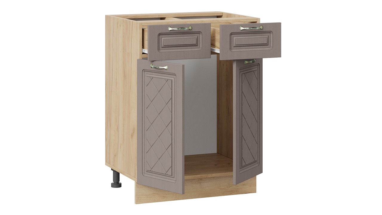 Шкаф напольный с двумя ящиками и двумя дверями «Бьянка» - 1Н6Я1 Дуб Крафт золотой, Дуб серый – 1 шт.
