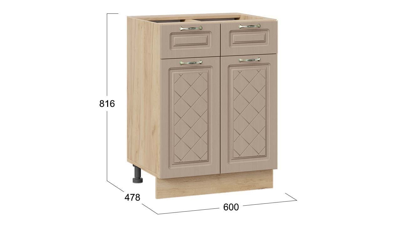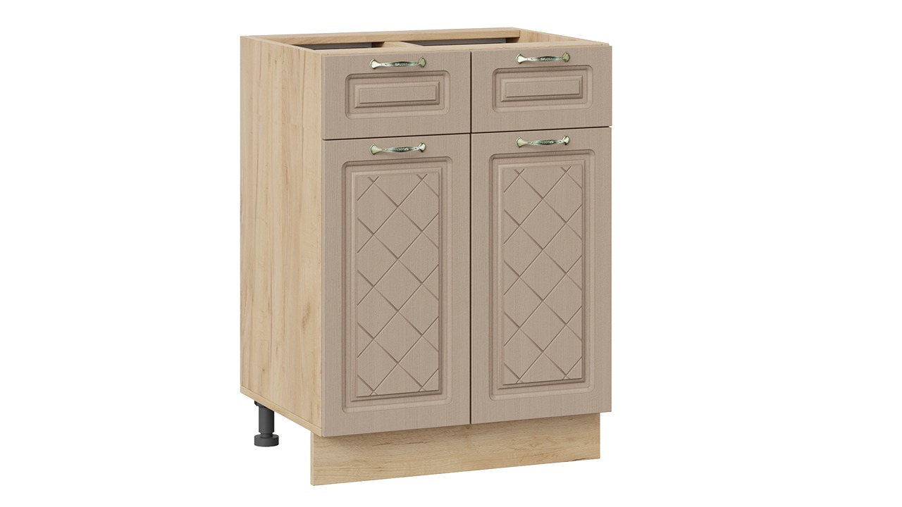 Шкаф напольный с двумя ящиками и двумя дверями «Бьянка» - 1Н6Я1 Дуб Крафт золотой, Дуб кофе – 1 шт.