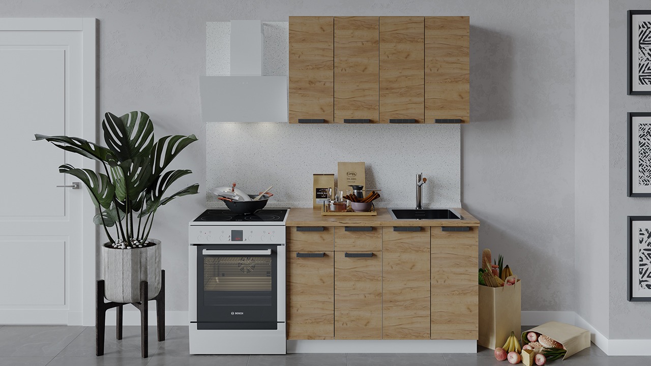 | Габаритный размер набора модулей без учета газовой плиты1 200 | Оттенок фасадаКоричневый | Цвет ручкиЧерный |