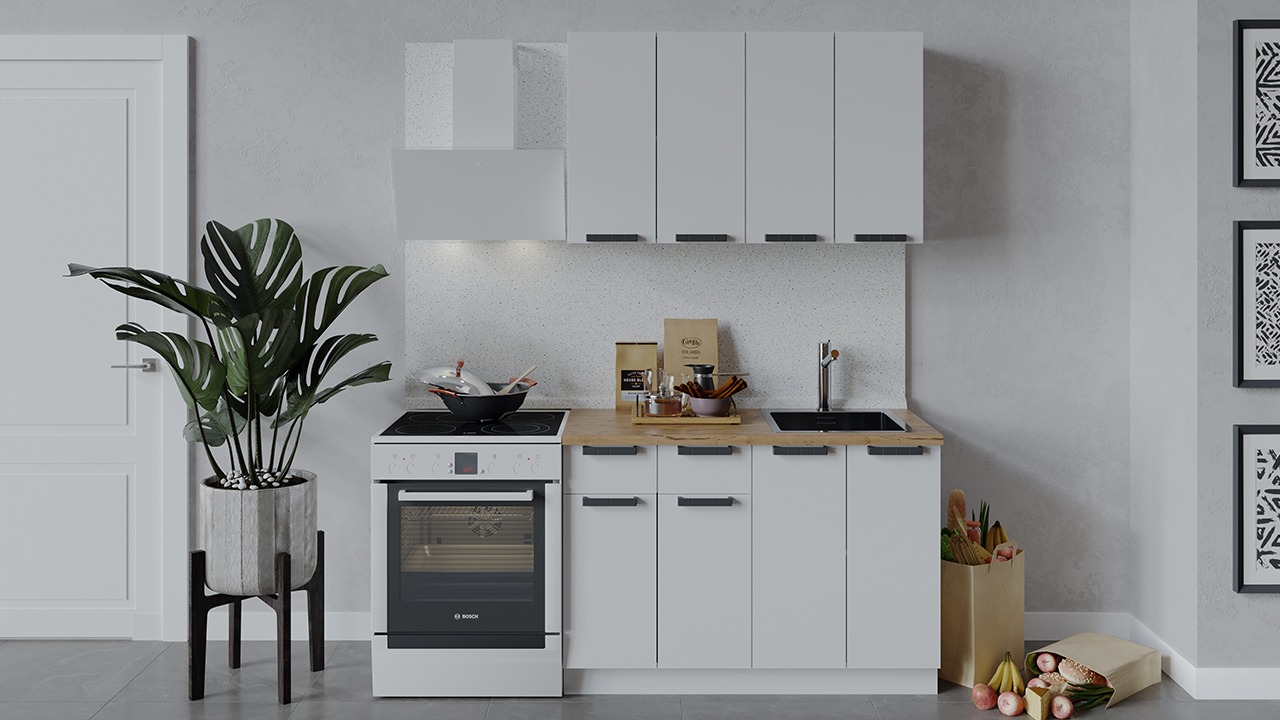| Габаритный размер набора модулей без учета газовой плиты1 200 | Оттенок фасадаБелый | Цвет ручкиЧерный |