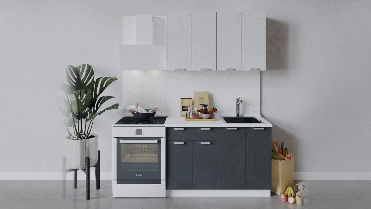 | Габаритный размер набора модулей без учета газовой плиты1 200 | Оттенок фасадаСерый | Цвет ручкиАлюминий |