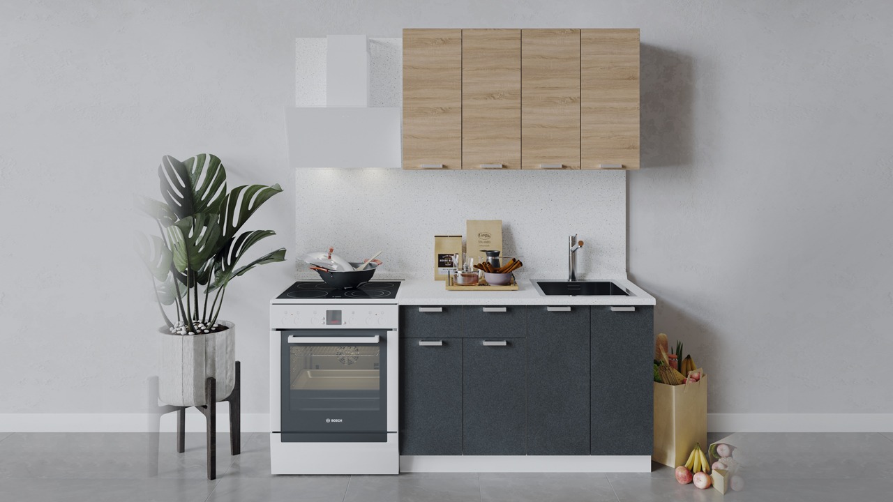| Габаритный размер набора модулей без учета газовой плиты1 200 | Оттенок фасадаСерый, Бежевый | Цвет ручкиАлюминий |