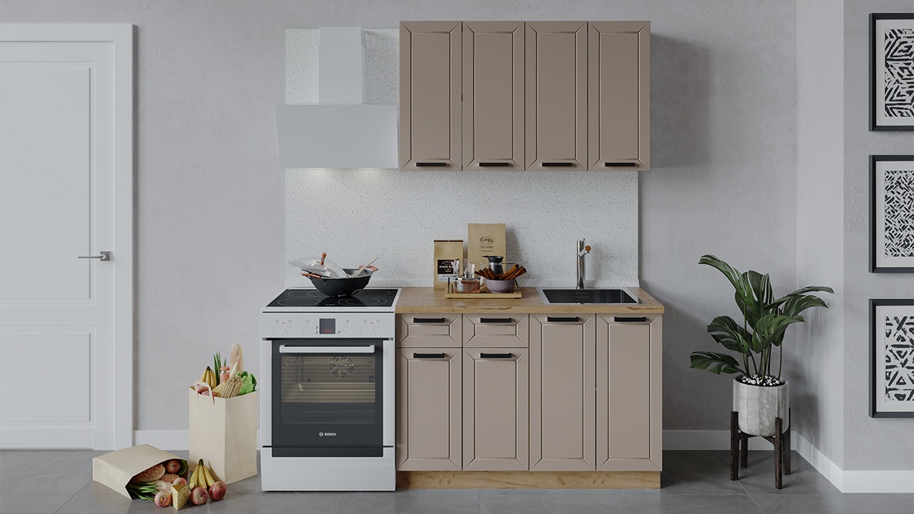 | Габаритный размер набора модулей без учета газовой плиты1 200 | Оттенок фасадаКоричневый | Цвет ручкиЧерный |