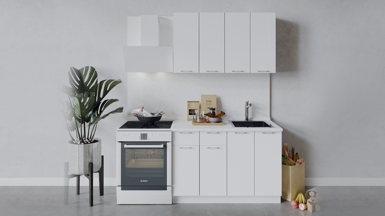 | Габаритный размер набора модулей без учета газовой плиты1 200 | Оттенок фасадаБелый | Цвет ручкиАлюминий, Хром |