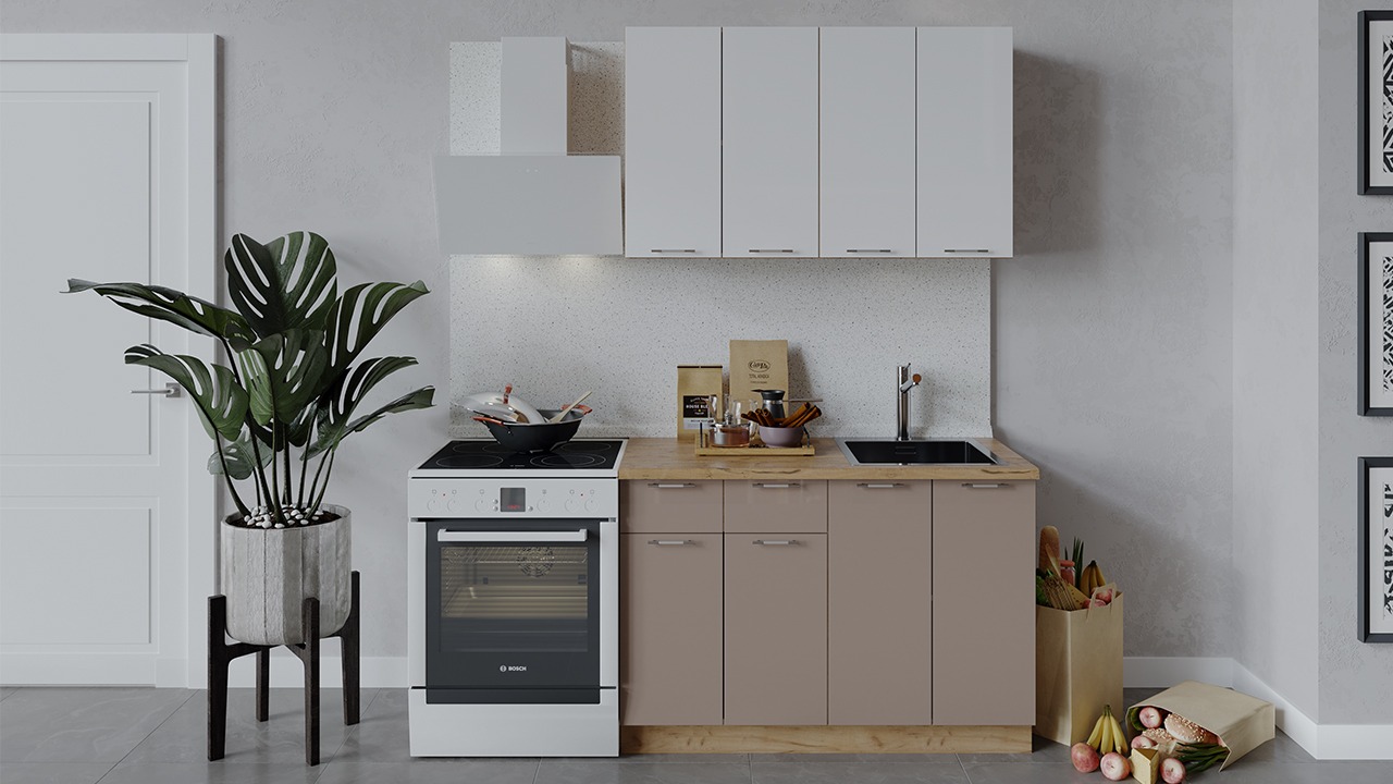 | Габаритный размер набора модулей без учета газовой плиты1 200 | Оттенок фасадаБелый, Коричневый | Цвет ручкиАлюминий, Хром |