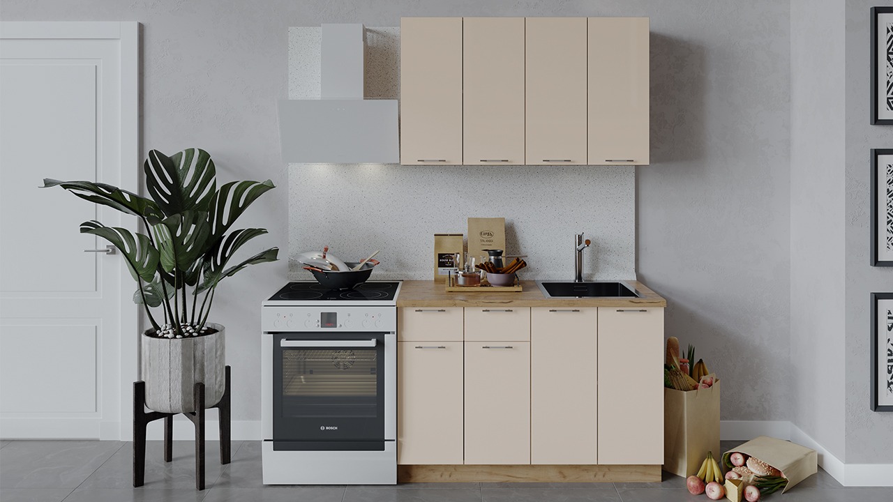 | Габаритный размер набора модулей без учета газовой плиты1 200 | Оттенок фасадаБежевый | Цвет ручкиАлюминий, Хром |