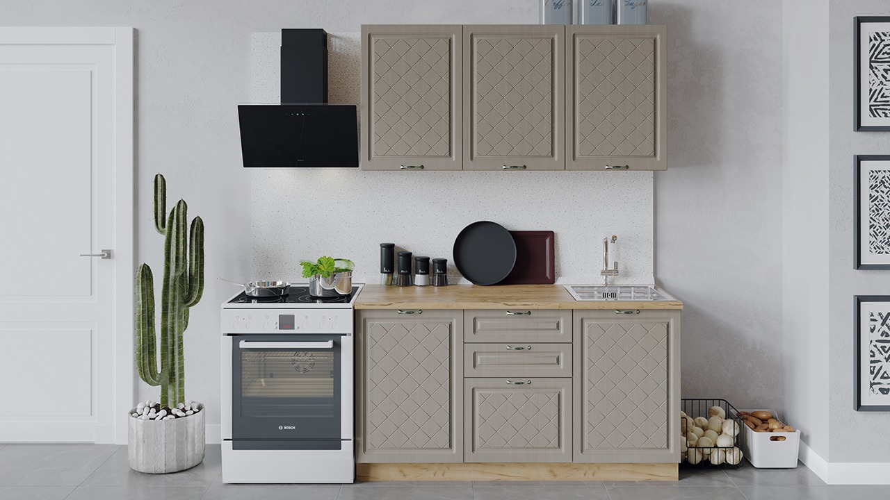 | Габаритный размер набора модулей без учета газовой плиты1 500 | Оттенок фасадаКоричневый | Цвет ручкиБрашированная старинная бронза |