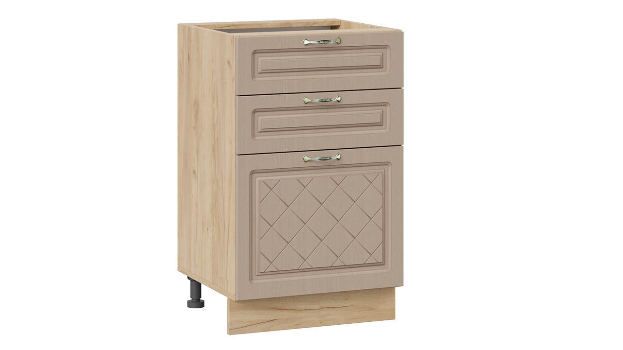 Шкаф напольный с тремя ящиками «Бьянка» - 1Н5Я3 Дуб Крафт золотой, Дуб кофе – 1 шт.