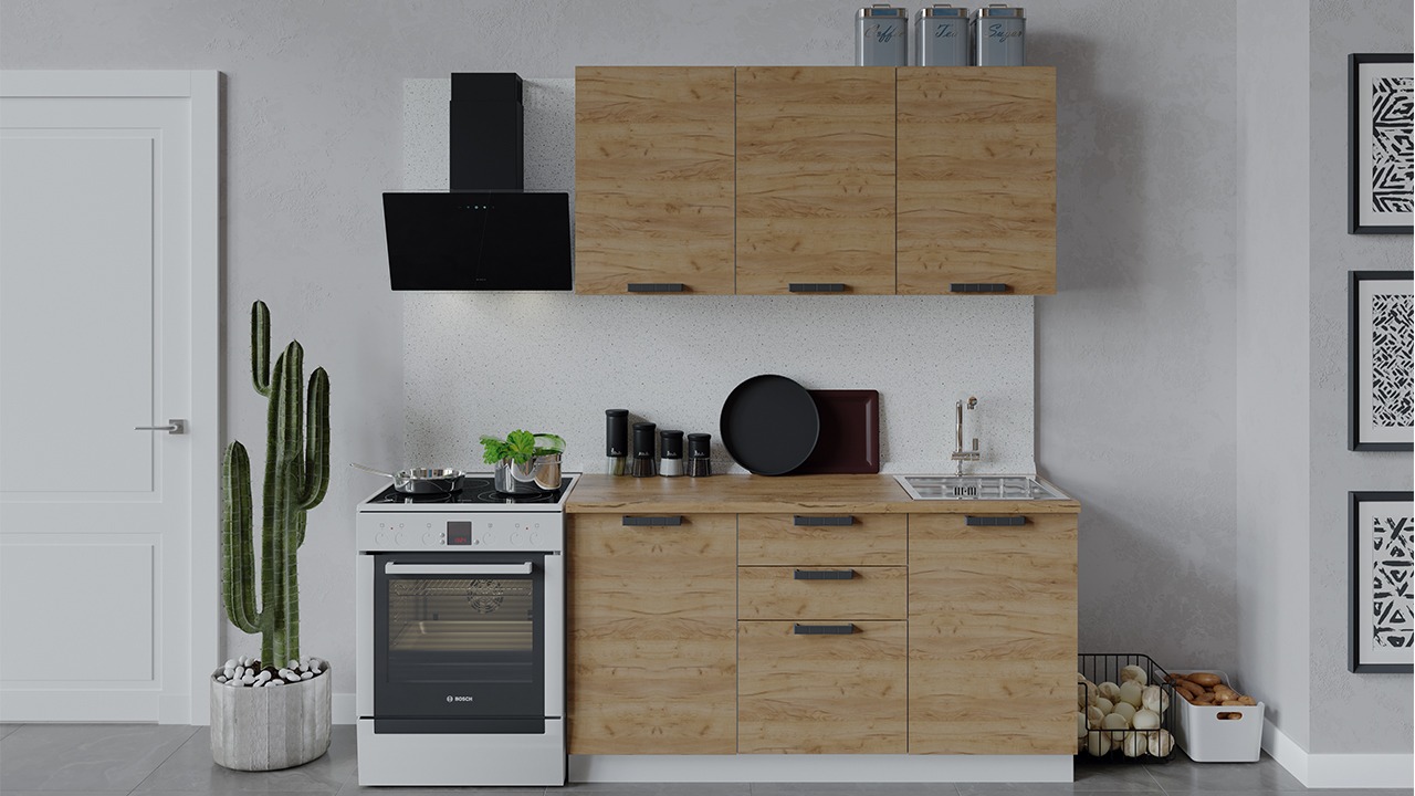 | Габаритный размер набора модулей без учета газовой плиты1 500 | Оттенок фасадаКоричневый | Цвет ручкиЧерный |